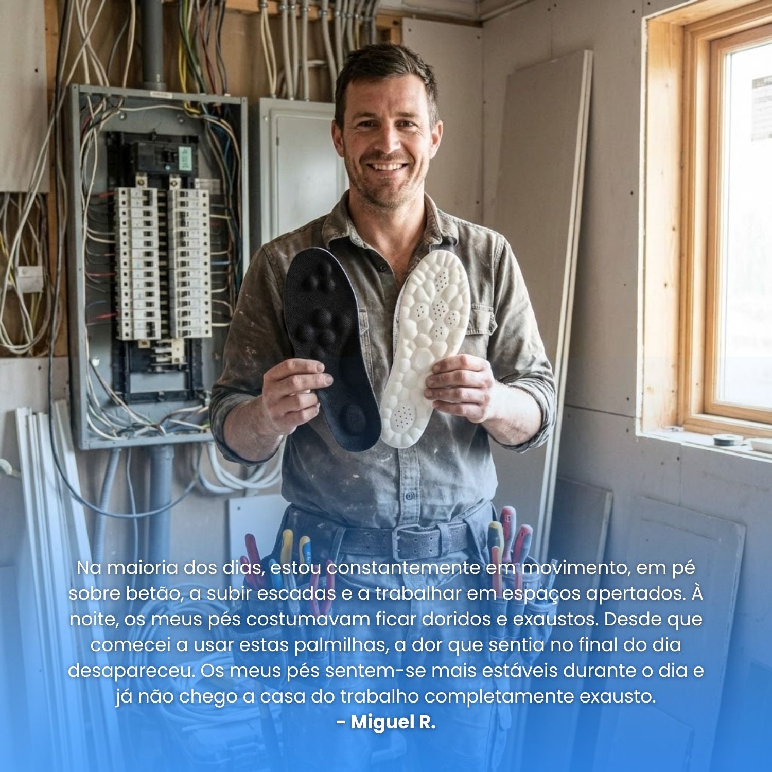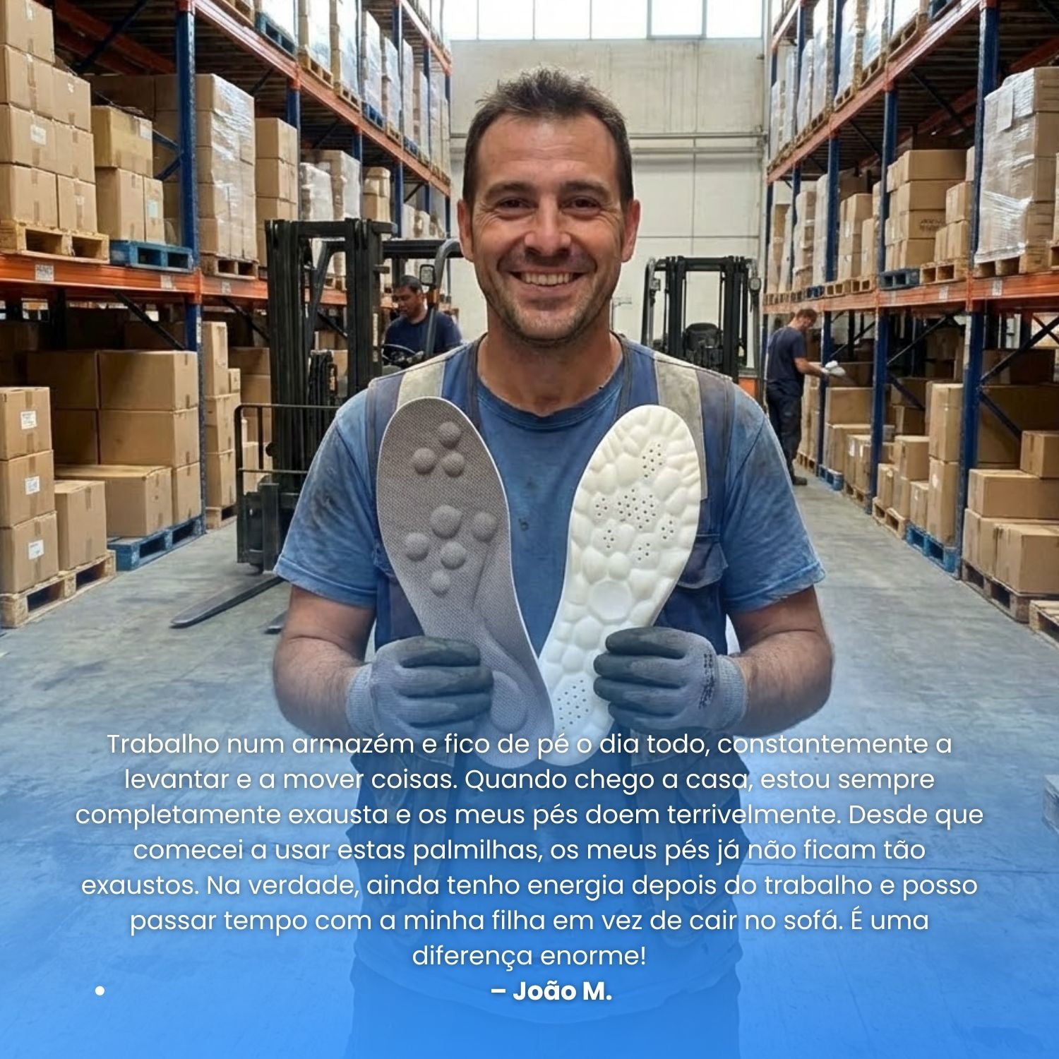 Imagine acordar sem medo do primeiro passo. Com as palmilhas Cloud da Sormira™, pode recuperar essa liberdade e confiança. Quando a dor nos pés deixa de dominar o seu dia, é incrível o quanto mais se consegue realizar. Dê um passeio à noite, trabalhe o turno inteiro ou explore a cidade com a sua família sem ser constantemente atormentado pela dor nos pés. Você terá mais controlo sobre a sua vida, sentirá-se mais à vontade sabendo que algo tão básico como caminhar já não o impede e simplesmente será mais feliz porque pode fazer as coisas que ama pelo tempo que quiser.